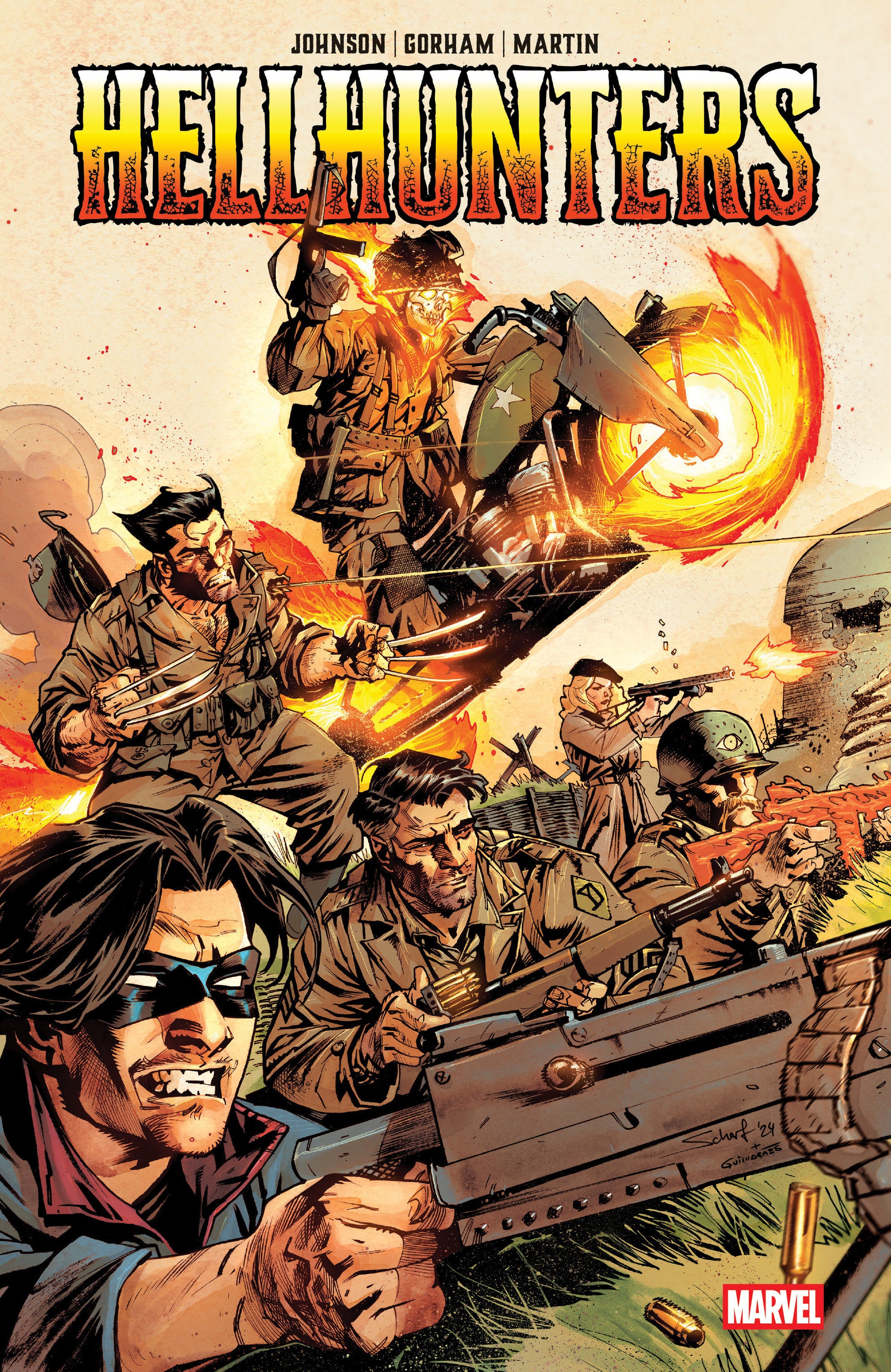 From the pages of INCREDIBLE HULK, breakout character Ghost Rider ’44 fights alongside Marvel’s iconic WWII era heroes!As U.S. Sergeant Sal Romero is parachuting into Nazi-occupied Europe in 1994, young Nazi officer Felix Bruckner becomes the host for an unspeakable evil. In the aftermath of their violent meeting, Romero is reborn as Ghost Rider ’44, who sets out not only to take revenge on Bruckner and the Nazis, but also to save mankind from annihilation! But he won’t ride alone — because Sergeant Nick Fury, Peggy Carter and Captain America are hunting down the demonic Captain Bruckner by his side! But just wait until they meet a certain Bowie-knife-wielding killing machine calling himself Logan! Yet when these Hellhunters’ methods prove too ruthless for Cap, they accidentally recruit their secret weapon: 15-year-old Bucky Barnes, their most lethal member yet! With the future Winter Soldier on the team and victory in Europe in the balance, will the Hellhunters be enough to face the cosmic Nazi Hellspawn known as Calphael?COLLECTING: Hellhunters (2024) 1-5